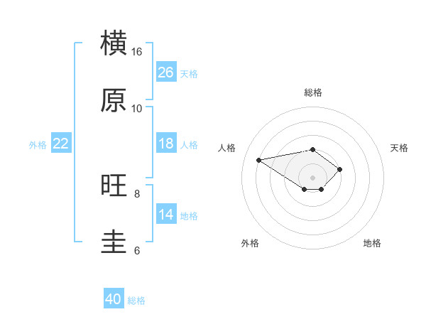 横原 旺圭さんの総格は40画の2点!