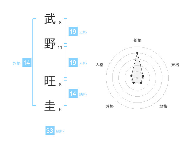 武野 旺圭さんの総格は33画の4点!