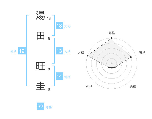 湯田 旺圭さんを姓名の画数から五運を鑑定