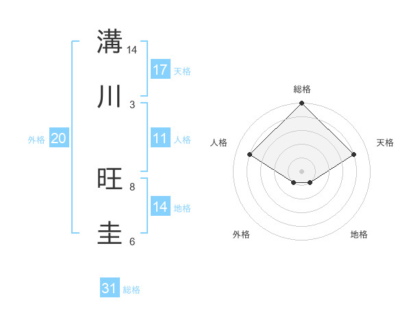溝川 旺圭さんの総格は31画の5点!