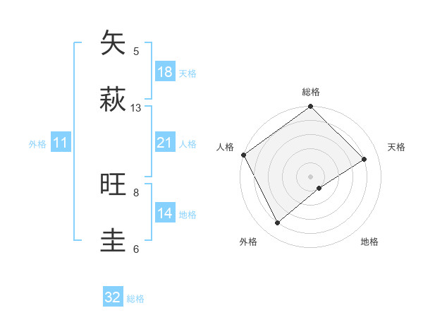 矢萩 旺圭さんの総格は32画の5点!