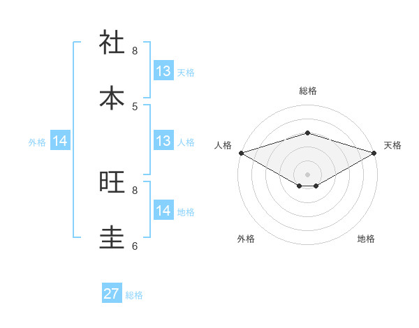 社本 旺圭さんを姓名の画数から五運を鑑定