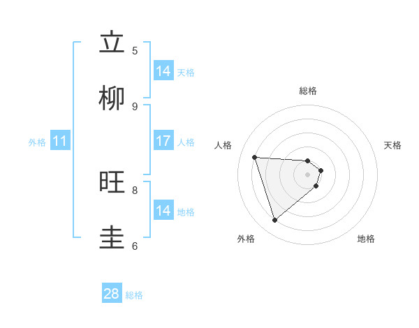 立柳 旺圭さんを姓名の画数から五運を鑑定