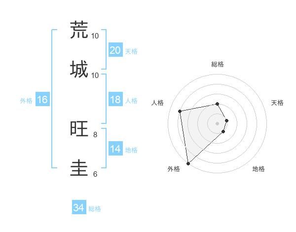 荒城 旺圭さんの総格は34画の2点!