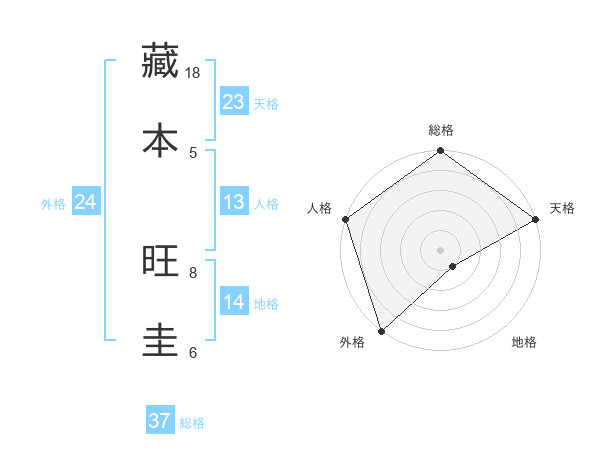 藏本 旺圭さんの総格は37画の5点!