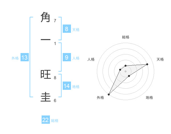 角一 旺圭さんの外格は13画の5点!