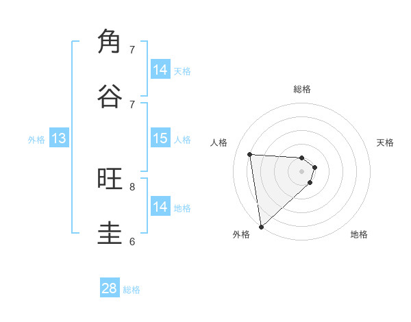 角谷 旺圭さんの総格は28画の1点!