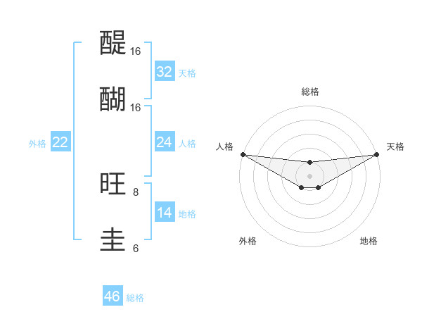 醍醐 旺圭さんを姓名の画数から五運を鑑定