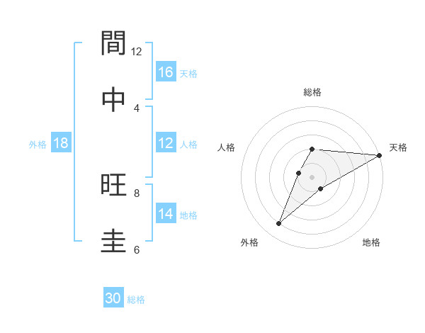 間中 旺圭さんの総格は30画の2点!