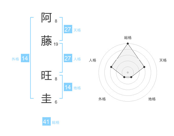 阿藤 旺圭さんの総格は41画の5点!