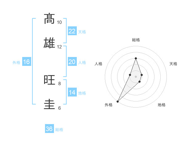 髙雄 旺圭さんの外格は16画の5点!