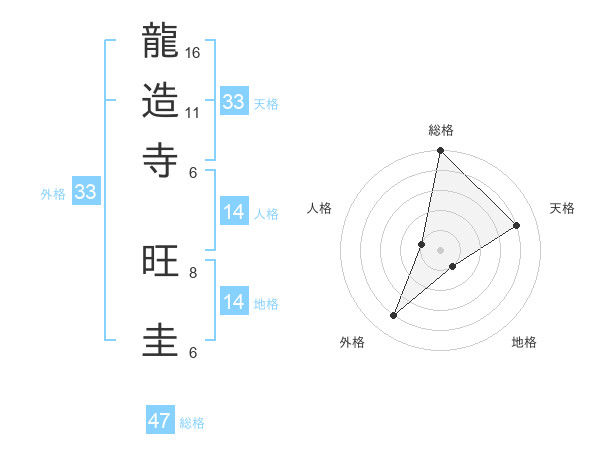 龍造寺 旺圭さんの外格は33画の4点!