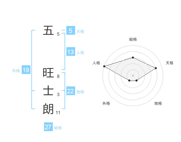 五 旺士朗さんの総格は27画の3点!