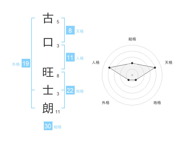 古口 旺士朗さんの総格は30画の2点!