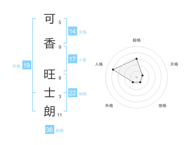 可香 旺士朗さんを姓名の画数から五運を鑑定