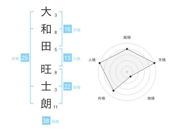 大和田 旺士朗さんを姓名の画数から五運を鑑定