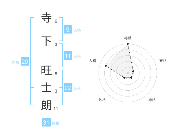 寺下 旺士朗さんを姓名の画数から五運を鑑定