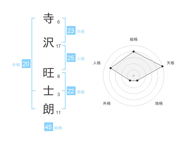 寺沢 旺士朗さんを姓名の画数から五運を鑑定