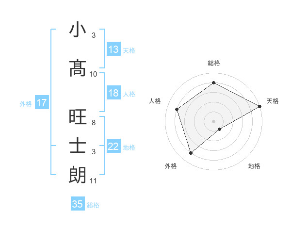 小髙 旺士朗さんの天格は13画の5点!