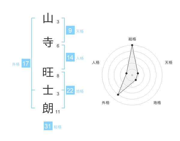 山寺 旺士朗さんを姓名の画数から五運を鑑定