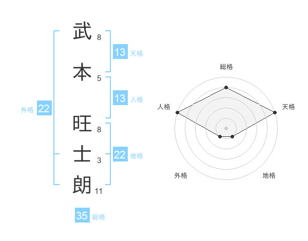 武本 旺士朗さんの地格は22画の1点!