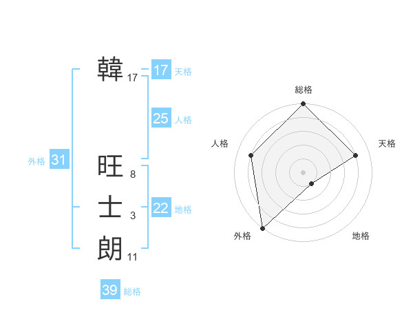 韓 旺士朗さんの外格は31画の5点!