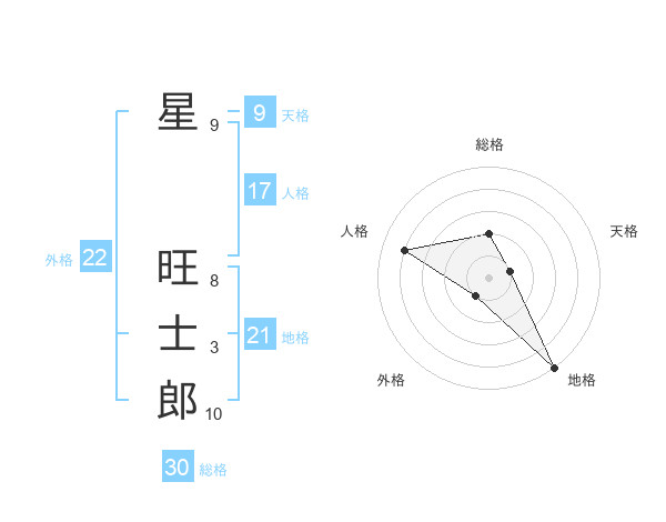 星 旺士郎さんの外格は22画の1点!