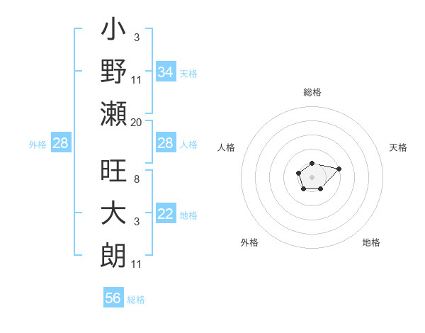 小野瀬 旺大朗さんを姓名の画数から五運を鑑定
