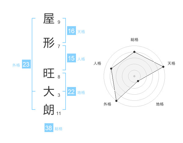 屋形 旺大朗さんを姓名の画数から五運を鑑定