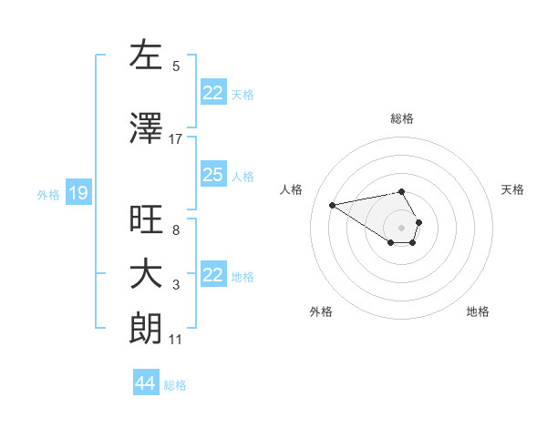 左澤 旺大朗さんを姓名の画数から五運を鑑定