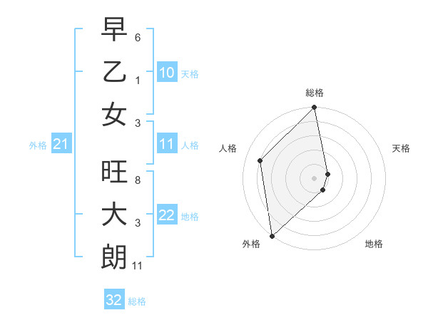 早乙女 旺大朗さんの総格は32画の5点!