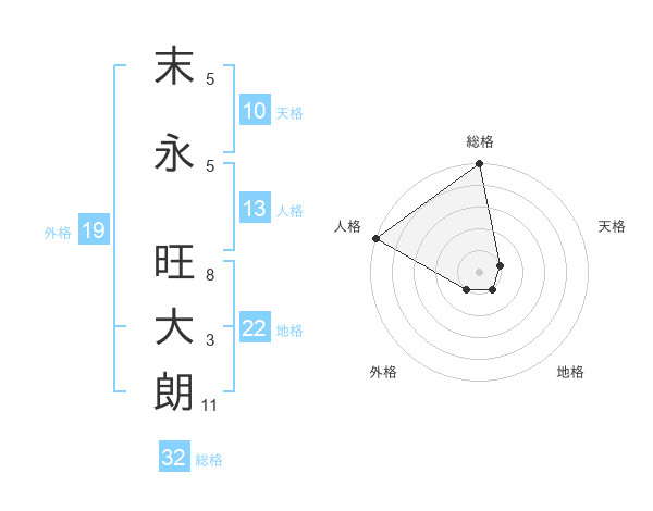 末永 旺大朗さんの総格は32画の5点!