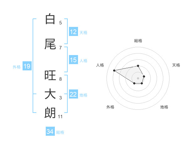 白尾 旺大朗さんの総格は34画の2点!