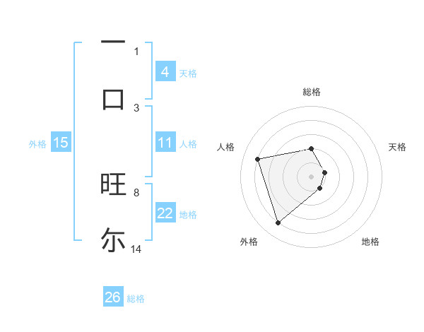 一口 旺尓さんを姓名の画数から五運を鑑定