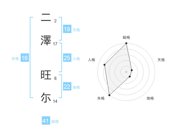 二澤 旺尓さんを姓名の画数から五運を鑑定