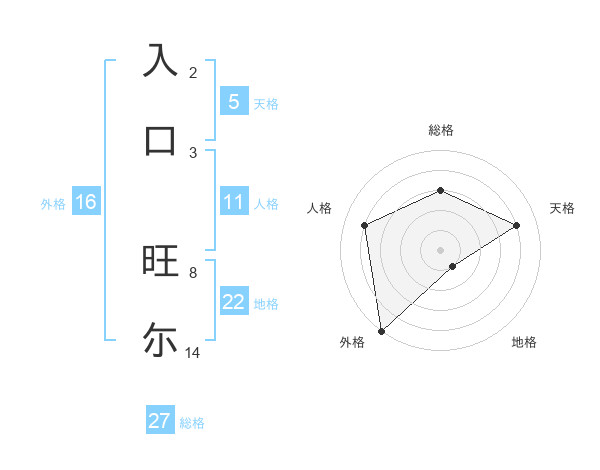 入口 旺尓さんの地格は22画の1点!