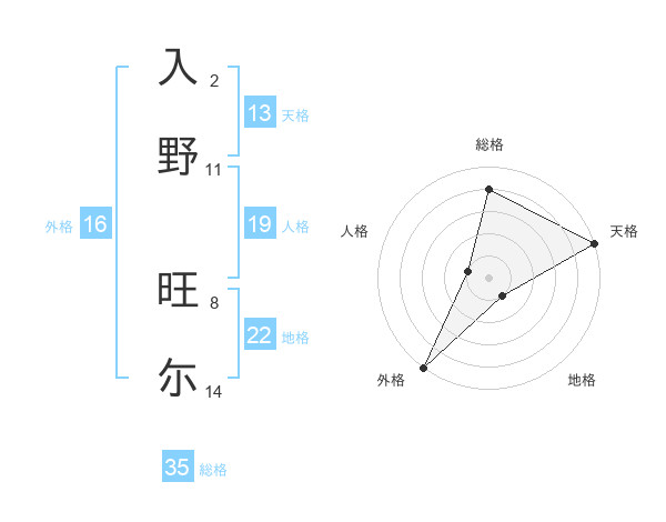 入野 旺尓さんを姓名の画数から五運を鑑定