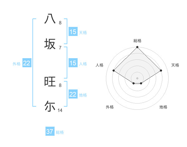 八坂 旺尓さんの総格は37画の5点!