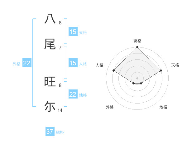 八尾 旺尓さんを姓名の画数から五運を鑑定