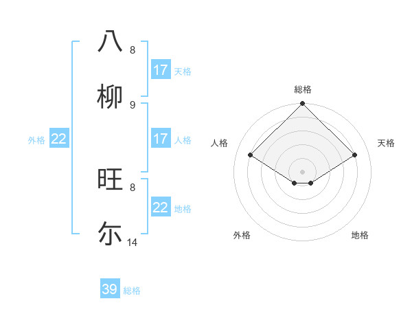 八柳 旺尓さんの外格は22画の1点!