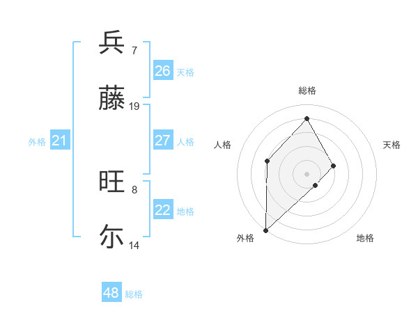 兵藤 旺尓さんを姓名の画数から五運を鑑定