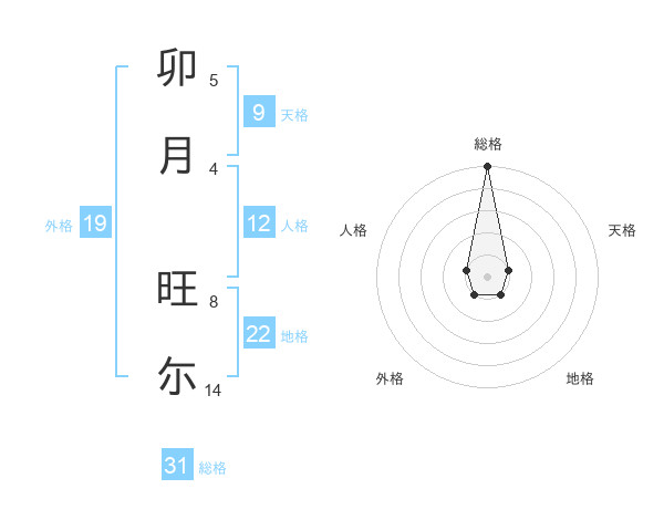 卯月 旺尓さんを姓名の画数から五運を鑑定