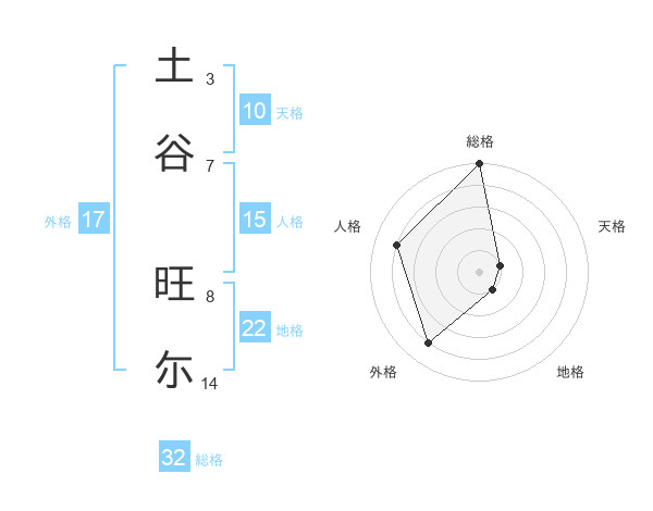 土谷 旺尓さんの総格は32画の5点!