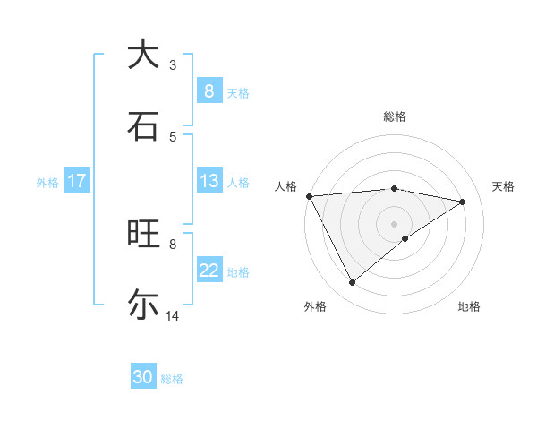 大石 旺尓さんの外格は17画の4点!