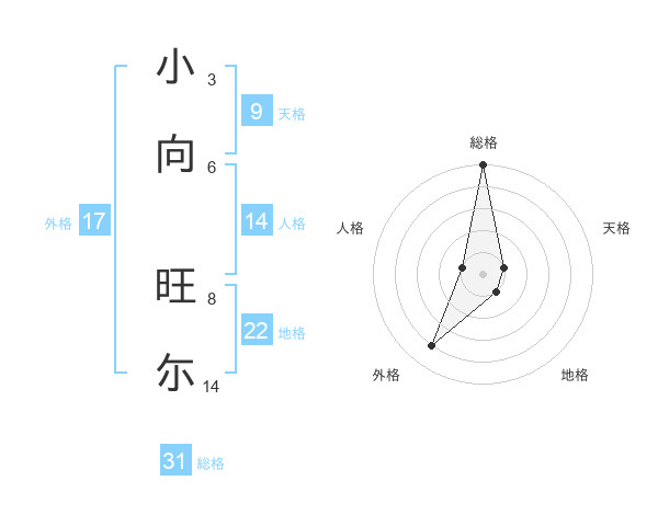 小向 旺尓さんの総格は31画の5点!