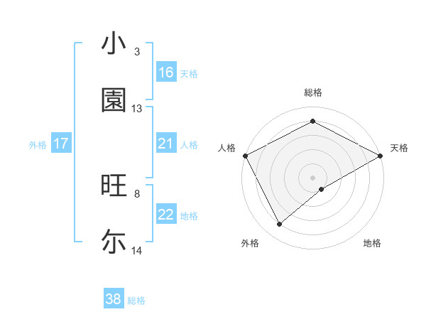 小園 旺尓さんを姓名の画数から五運を鑑定