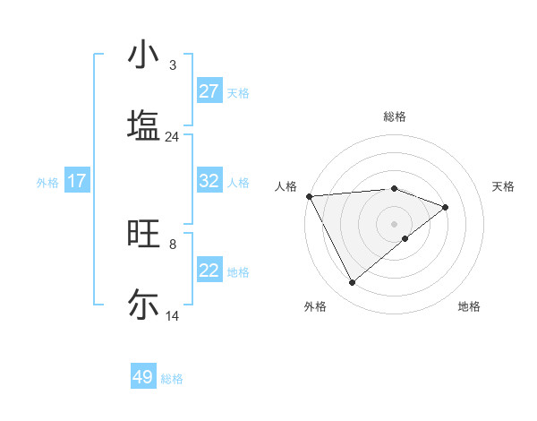 小塩 旺尓さんを姓名の画数から五運を鑑定