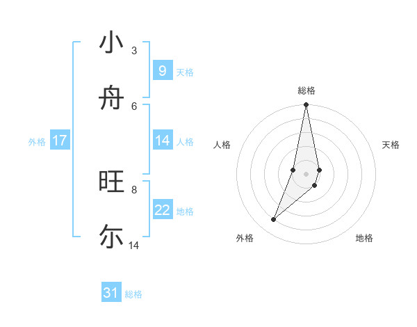 小舟 旺尓さんの総格は31画の5点