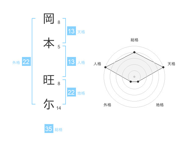 岡本 旺尓さんの外格は22画の1点!