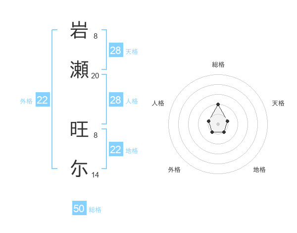 岩瀬 旺尓さんの外格は22画の1点!